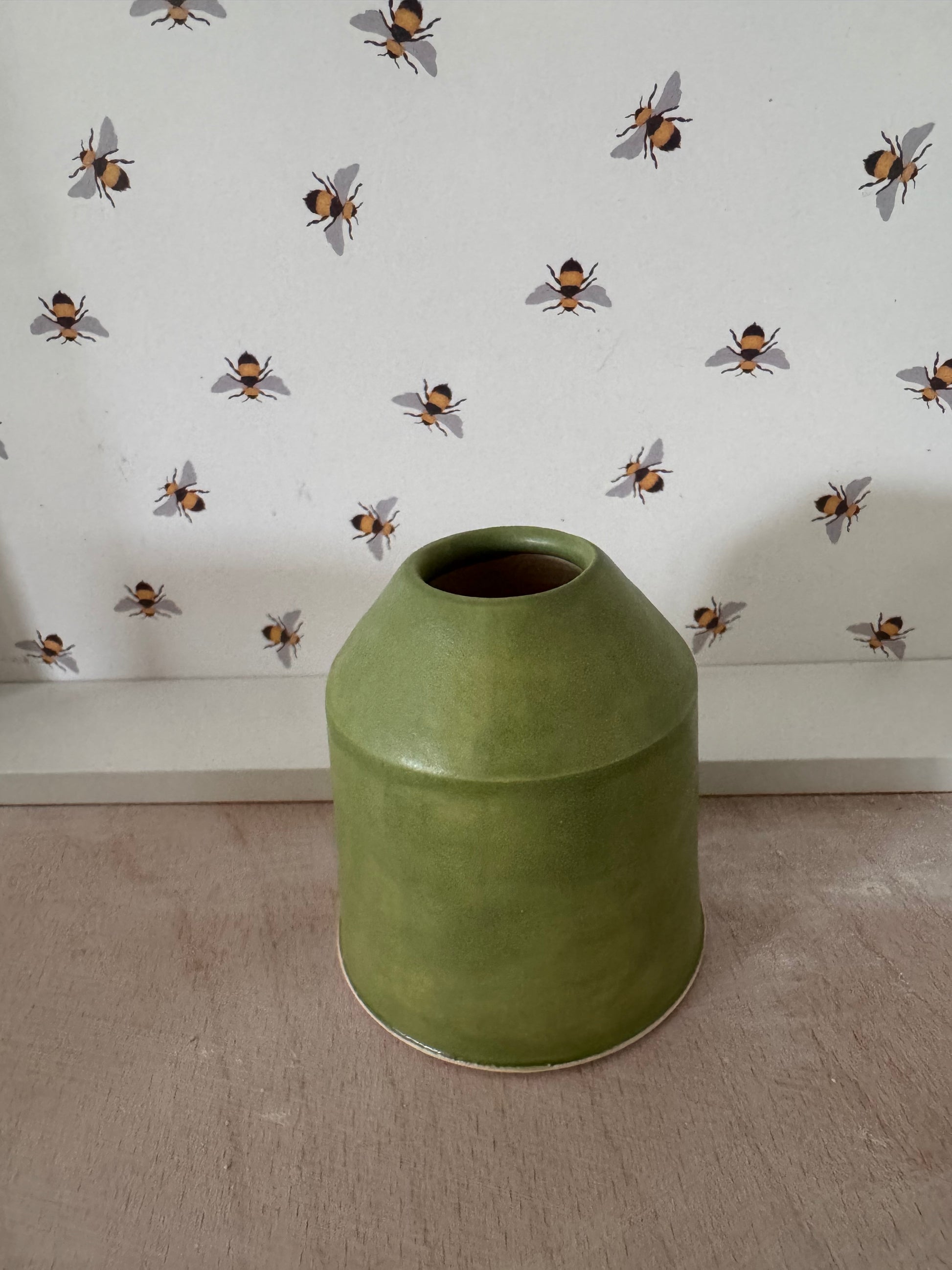 Hand thrown on the wheel with white stoneware clay and glazed by hand in a bright, matte green.