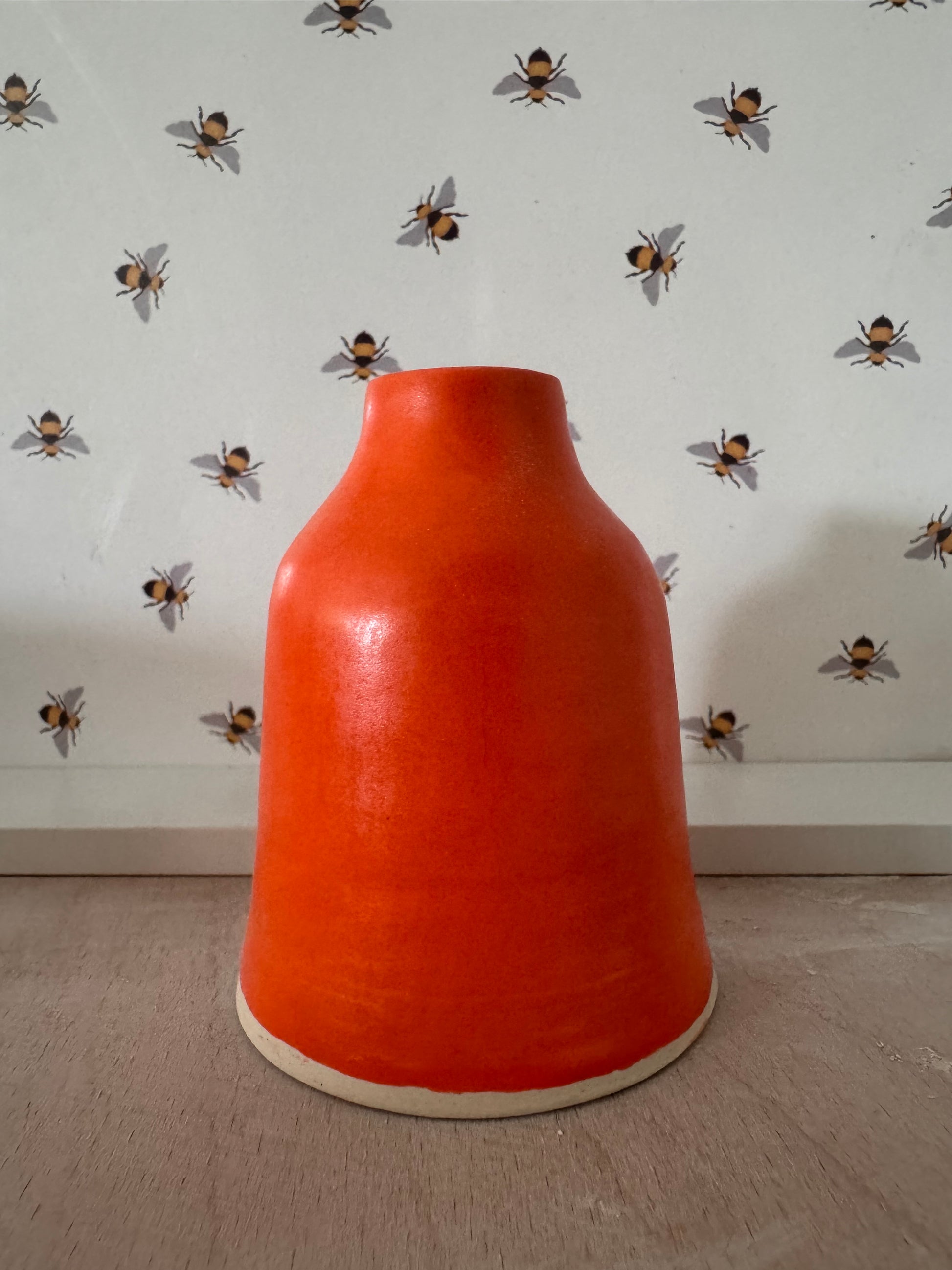 Hand thrown on the wheel with white stoneware clay and glazed by hand in a bright, matte orange.